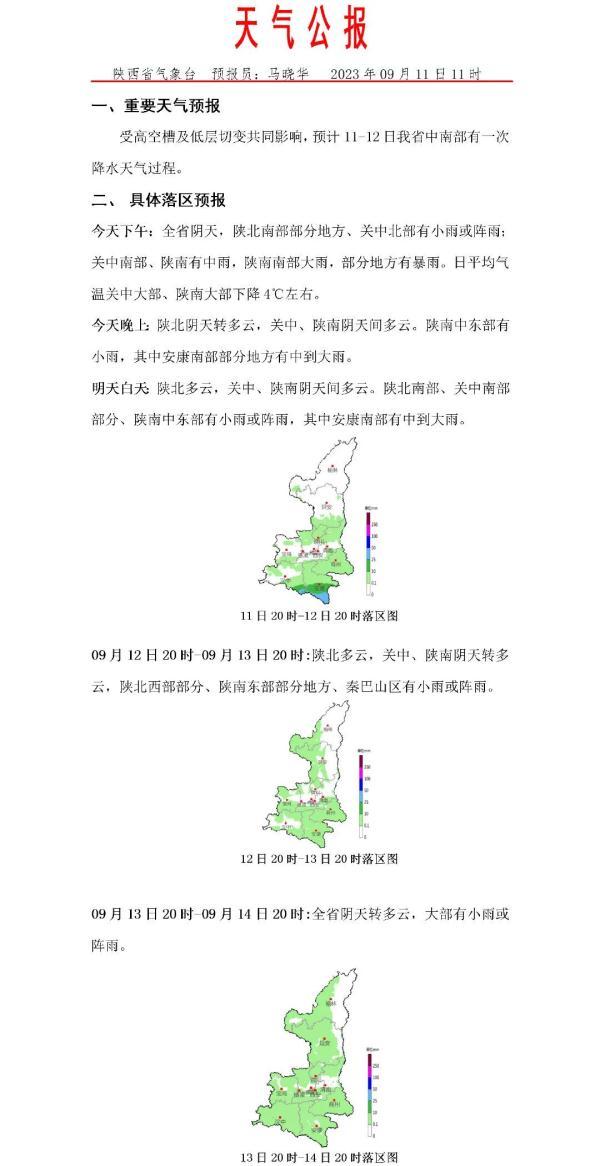陜西氣象:受高空槽及低層切變共同影響,預計11-12日陜西省中南部有一次降水天氣過程。