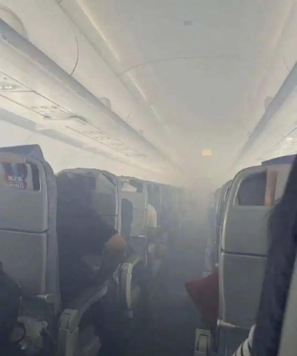 著陸前客艙出現煙霧。視頻截圖