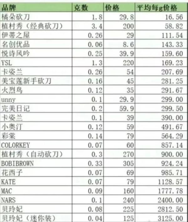 值得注意的是,有網友將各美妝品牌眉筆每克的價格做了一個整合。可以發現,花西子的眉筆每克價格要高于大部分美妝品牌。評論區有網友調侃道,“一支眉筆1g相當于1.5g黃金,花西子比黃金還貴。”
