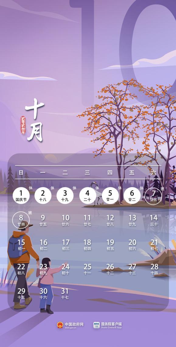 9月29日至10月6日放假調(diào)休,共8天。