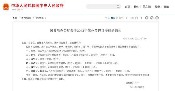 根據(jù)《國務(wù)院辦公廳關(guān)于2023年部分節(jié)假日安排的通知》,