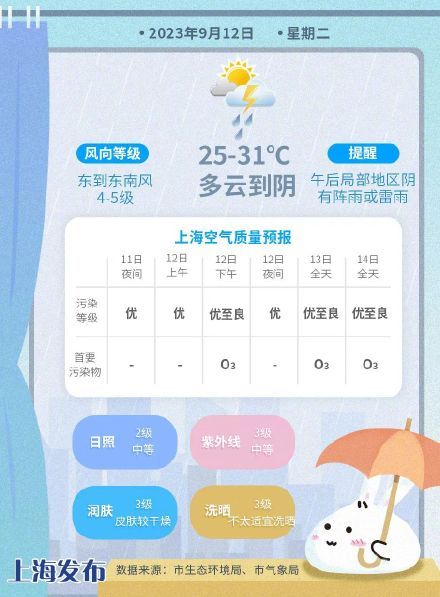 明天申城天氣依然不太穩定,多云到陰為主,局部地區仍可能出現陣雨或雷雨,上班上學建議備好雨傘。明天風力較大,東到東南風4-5級,氣溫較今天略有下降,在25-31℃之間。本周北方冷空氣活動頻繁,伴隨著冷空氣滲透南下,申城炎熱天氣有望緩解,周三、周四最高氣溫將降至30℃以下。你期待秋天早點到來嗎?