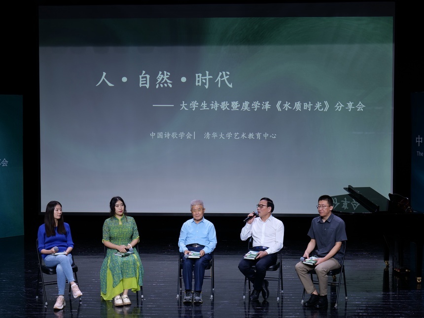 9月9日,由中國詩歌學(xué)會、清華大學(xué)藝術(shù)教育中心主辦的“現(xiàn)象與趨勢”——當(dāng)代中國詩歌發(fā)展研討會和“人·自然·時(shí)代”——大學(xué)生詩歌暨虞學(xué)澤《水質(zhì)時(shí)光》分享會在清華大學(xué)舉行。詩人虞學(xué)澤攜新詩集《水質(zhì)時(shí)光》走進(jìn)清華園,與學(xué)者、學(xué)生分享詩歌創(chuàng)作心得。