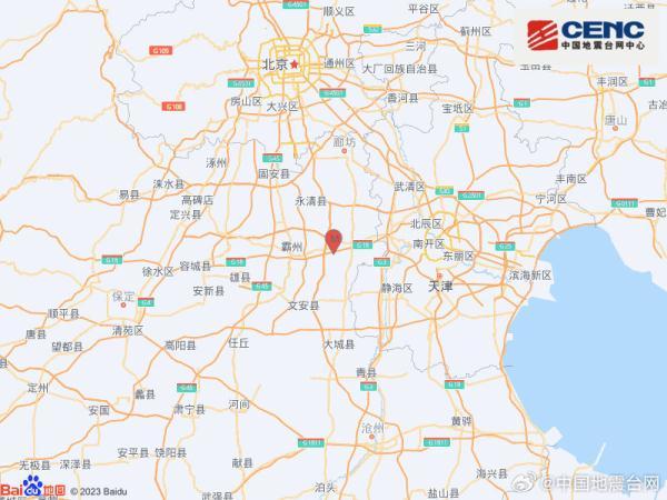 中國地震臺網正式測定:09月11日23時45分在河北廊坊市霸州市(北緯39.12度,東經116.63度)發生2.3級地震,震源深度10千米。(總臺央視記者 張騰飛)