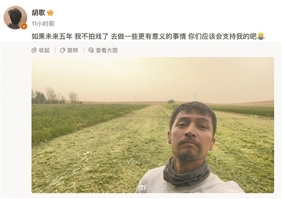 8月21日,胡歌發微博:“如果我不拍戲了,你們應該會支持我吧?”
