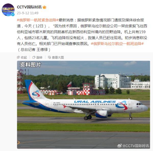 援引俄羅斯緊急情況部門(mén)通報(bào)及媒體綜合報(bào)道,今天(12日),因?yàn)榧夹g(shù)原因,俄羅斯烏拉爾航空公司一架由索契飛往西伯利亞城市鄂木斯克的民航客機(jī)在新西伯利亞州境內(nèi)的田野迫降。