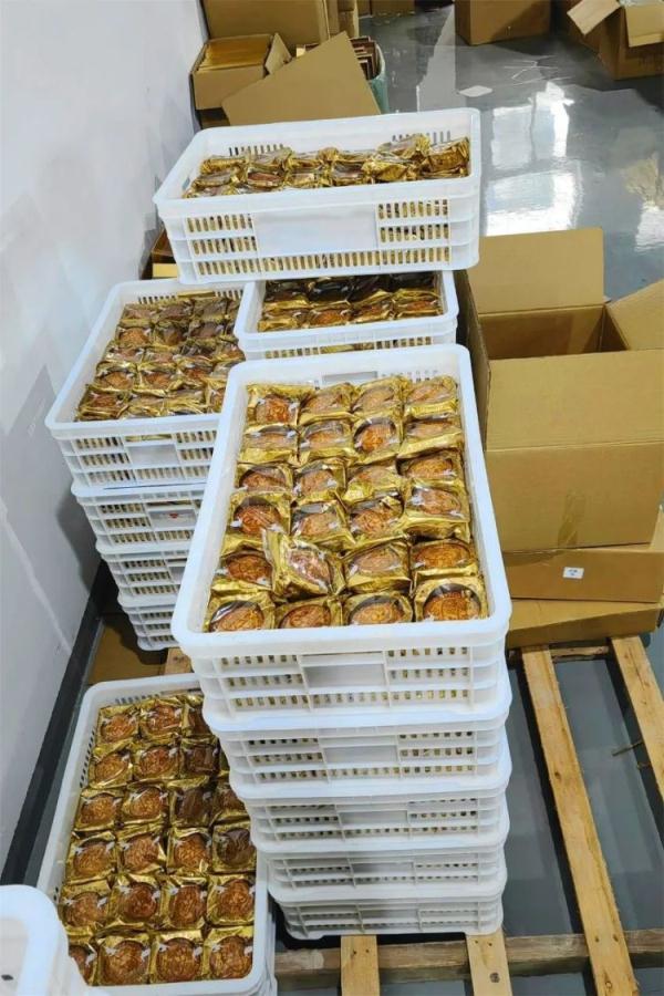 包裝好的月餅會再被送往另一外地窩點,由李某的弟弟等人在盒子外包裝貼假冒的防偽標簽,以假亂真。網上的購買訂單由李某接單后,通知弟弟發貨。