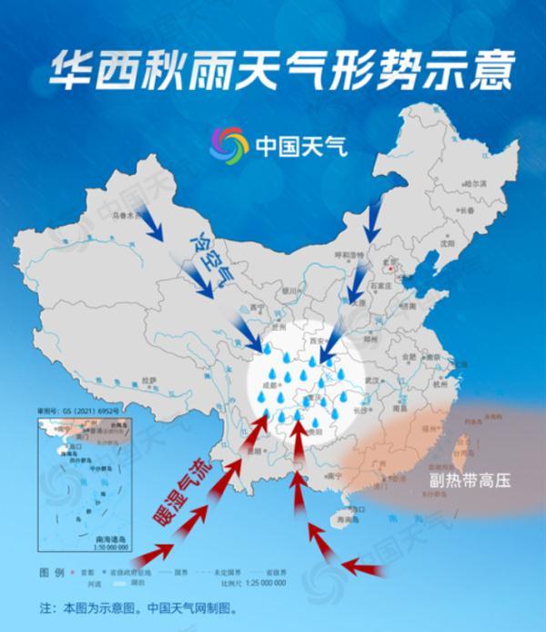 華西秋雨最顯著的特點就是降雨日數多,9月到11月的雨日可達30到50天,多的地區甚至接近60天,這就意味著平均每三天就有一兩天在下雨。