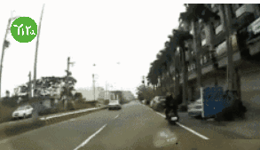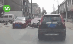 圖:摩托車駕駛人慘遭“開門殺”,摔倒后再與兩車發生二次碰撞。