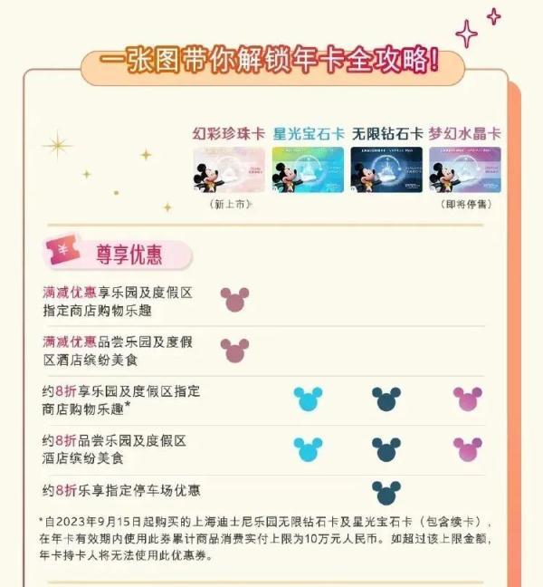 不少網友對比發現,新發售的幻彩珍珠卡價格低于原先的夢幻水晶卡,但同時取消了八折購買樂園和度假區美食和商品的優惠,改為了滿減優惠。