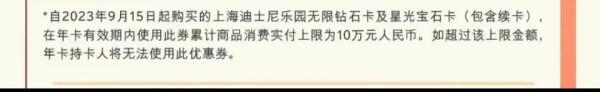 “在年卡有效期內使用優惠券累計商品實付上限為10萬元人民幣”。