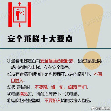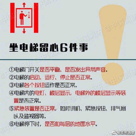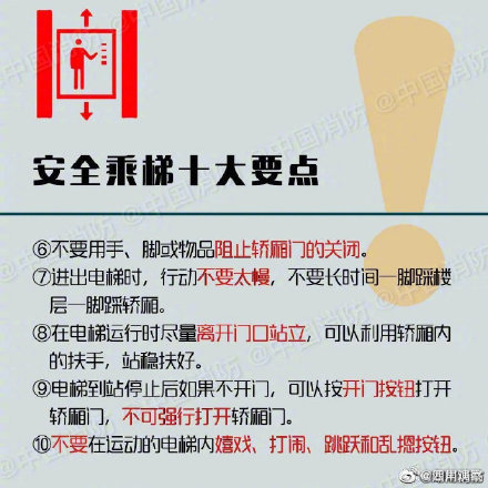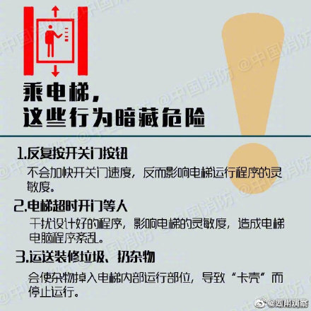 乘坐電梯的時候一定要注意這些行為不能做,十分危險,尤其是帶有小孩的家長一定要注意!這份關于電梯安全的知識轉擴一起學習。(中國消防)