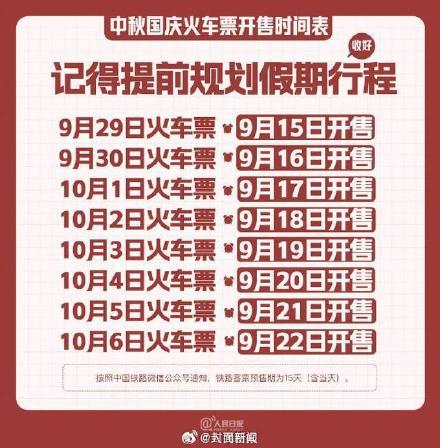 今年中秋國慶假期“合體”,9月29日至10月6日放假調(diào)休共8天。9月15日(本周五)開售中秋節(jié)(9月29日)火車票。高速免費(fèi)通行福利為9月29日0時(shí)至10月6日24時(shí)。大家想好去哪玩了嗎?(人民日報(bào))