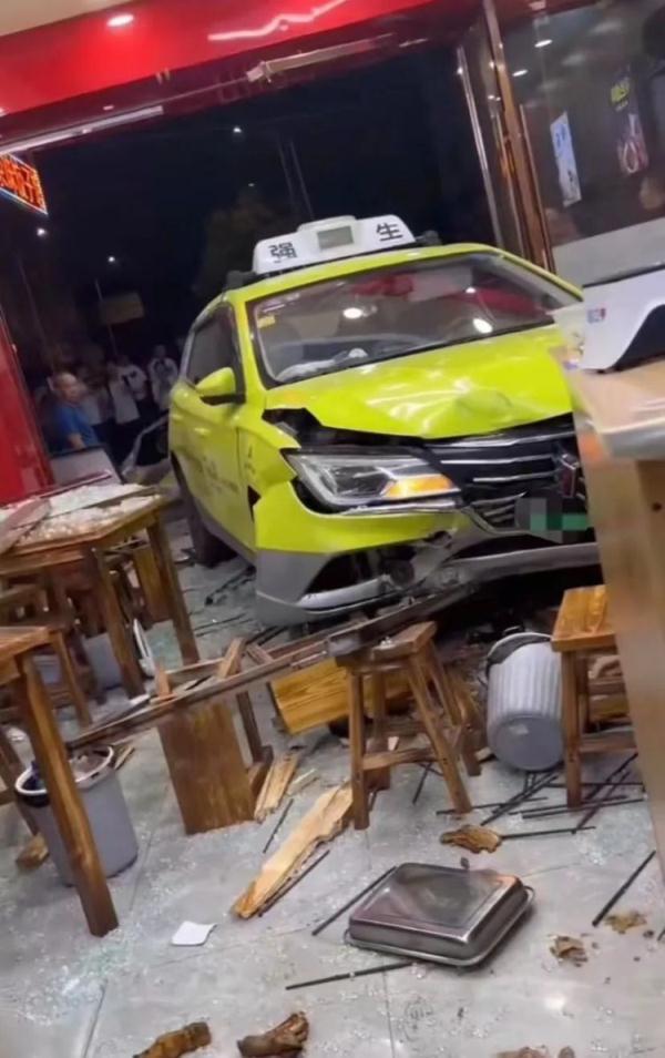 一輛出租車徑直沖入一家餐飲店內(nèi) ,