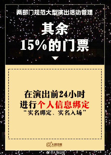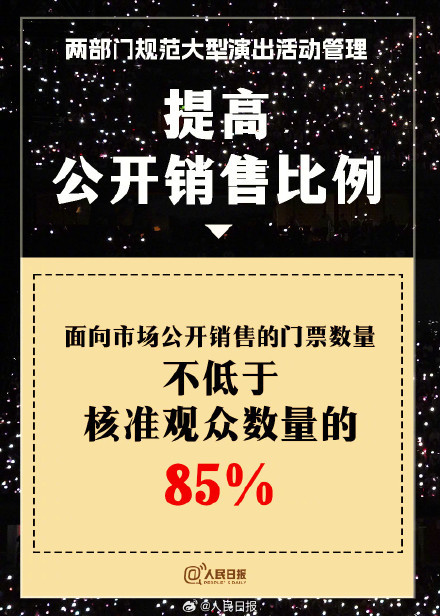 兩部門通知:①實名購票、實名入場。5000人以上演唱會購票人和入場人必須一致;②大型演出要設定梯次退票標準;③公開銷售門票不低于核準觀眾數(shù)量的85%;④嚴禁假唱、假演奏。周知!