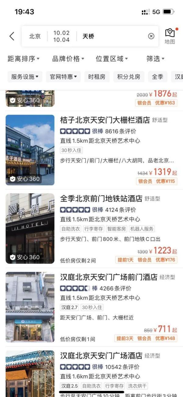 “做國慶旅行攻略發現,北京、上海、成都的如家、漢庭酒店全部漲價,日常300元/晚的大床房基本都漲到了700元甚至近千元。”據報道,多個網紅旅游目的地城市,經濟型酒店國慶房型房價直逼高端度假酒店房價。