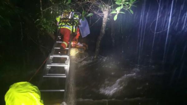 現場是兩名男子雨天爬山,遇山洪暴發,被困山中 ,19時37分,鹽田站消防救援人員到場,開始沿山搜尋被困人員,于19時50分找到被困人員,20時14分,救援人員在穿戴好水域救援裝備后,利用繩索和兩節拉梯將被困人員救出,無人員受傷。