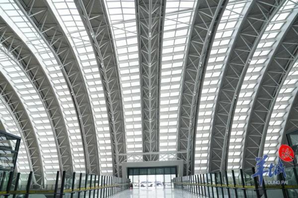 記者今日探營時發現,新塘站站房已基本裝修完畢,內部的候車大廳看上去寬敞明亮,視野非常開闊,中間的空地已經有數百張候車椅整齊擺放好。