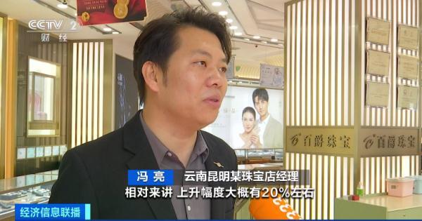 云南昆明某珠寶店經理 馮亮:今年市場比起去年來說,上升幅度大概有20%。