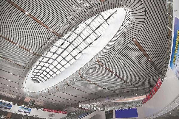 新建廈門北站換乘中心屋面安裝了大面積的天氣感應式智能天窗,體現了智慧節能的理念。(記者林輝 攝)
