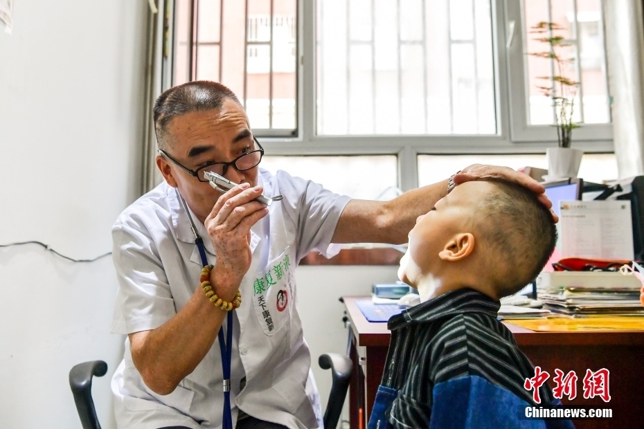 鄉村醫生谷平在診所里為小朋友進行檢查。中新社記者 劉新 攝