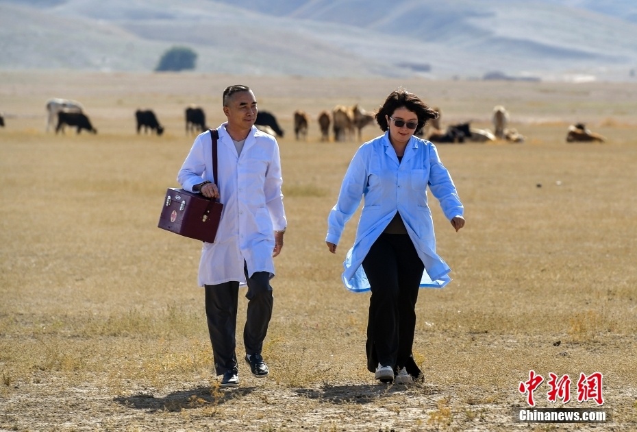 除了日常坐診于沙灣谷平綜合門診部,解決民眾健康問題外,為提升當地民眾的健康素養及防病治病意識,谷平還會定期走訪入戶進行科普,提高當地民眾對于疾病診療的認識,在最靠近民眾的崗位上踐行醫者擔當。圖為鄉村醫生谷平(左)和助手前往牧區巡診。中新社記者 劉新 攝