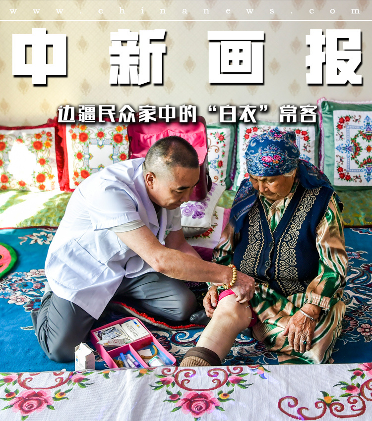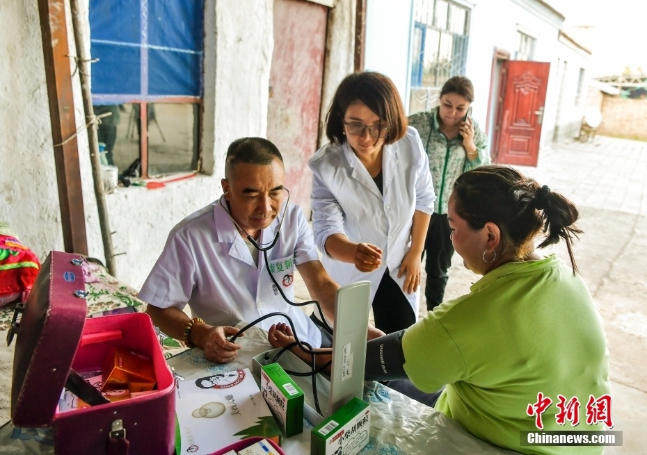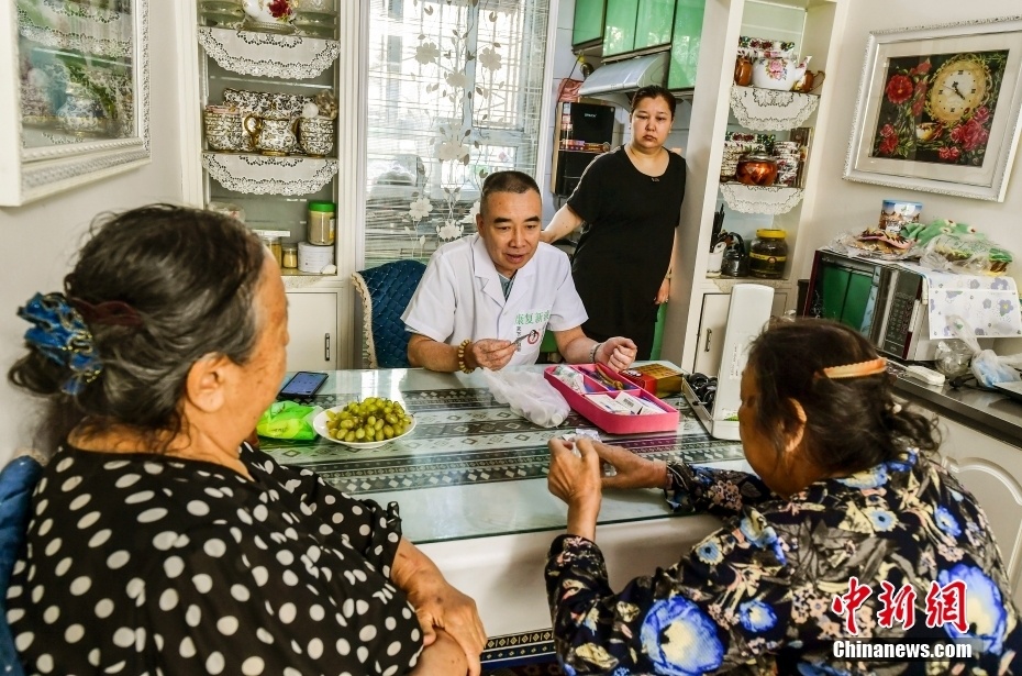 新疆塔城地區沙灣市一小區,鄉村醫生谷平為不方便外出就診的患者提供上門服務。中新社記者 劉新 攝