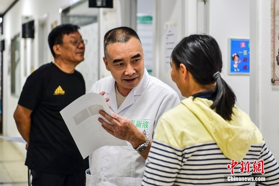 鄉村醫生谷平在診所里為市民做體檢指導。中新社記者 劉新 攝