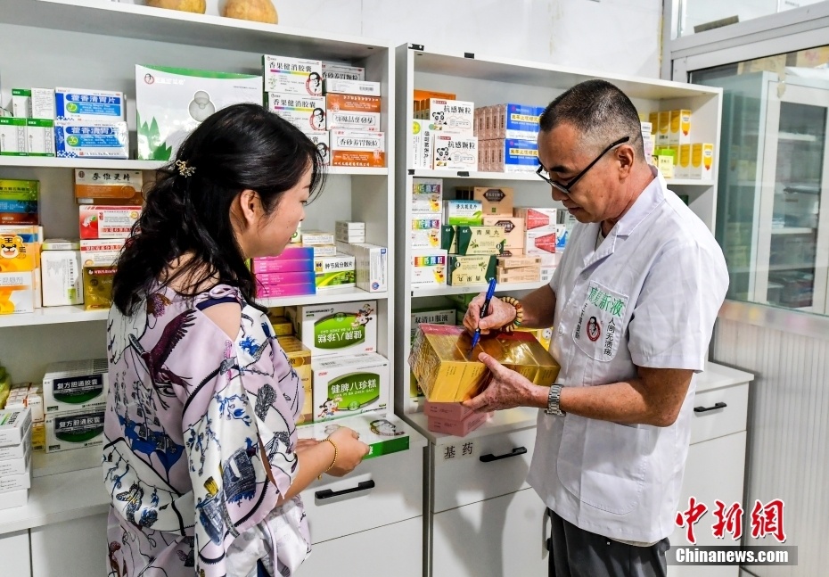 村醫生谷平在診所里為患者配制中成藥。中新社記者 劉新 攝