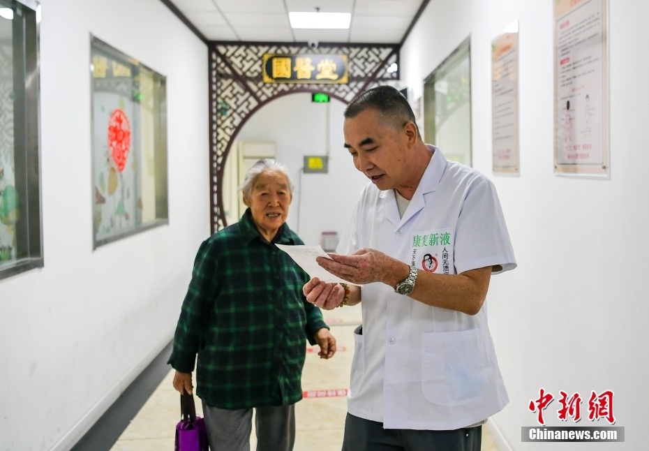 鄉村醫生谷平在診所里為前來體檢的老人提供幫助。中新社記者 劉新 攝