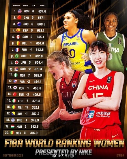9月13日,國際籃聯(lián)公布最新一期世界女籃排名,中國女籃穩(wěn)居第二位。去年10月,中國隊在女籃世界杯中發(fā)揮出色,收獲亞軍,世界排名躍居第二。在今年舉行的國際籃聯(lián)女子亞洲杯中,中國隊延續(xù)出色的競技狀態(tài),贏得冠軍,世界排名也穩(wěn)定保持在第二位。目前,中國女籃正積極備戰(zhàn)杭州亞運會。(人民日報記者陶相安)