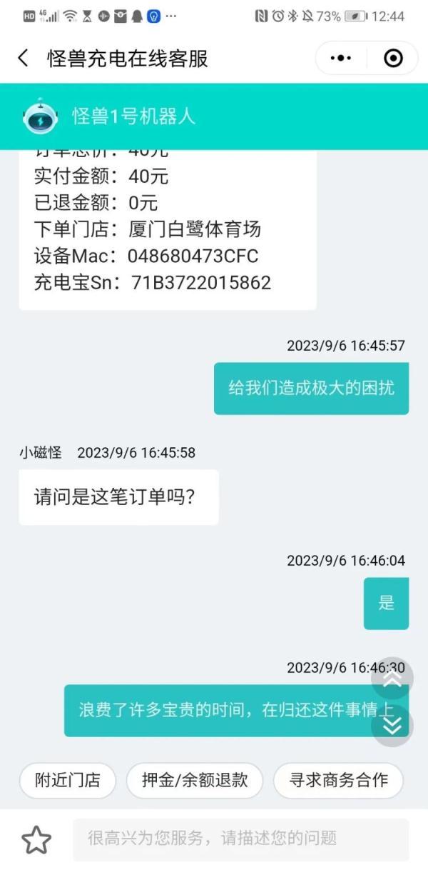 就趕緊聯(lián)系了“怪獸充電”客服反映