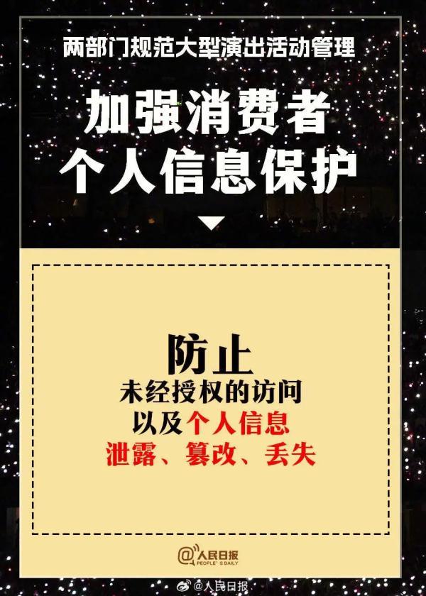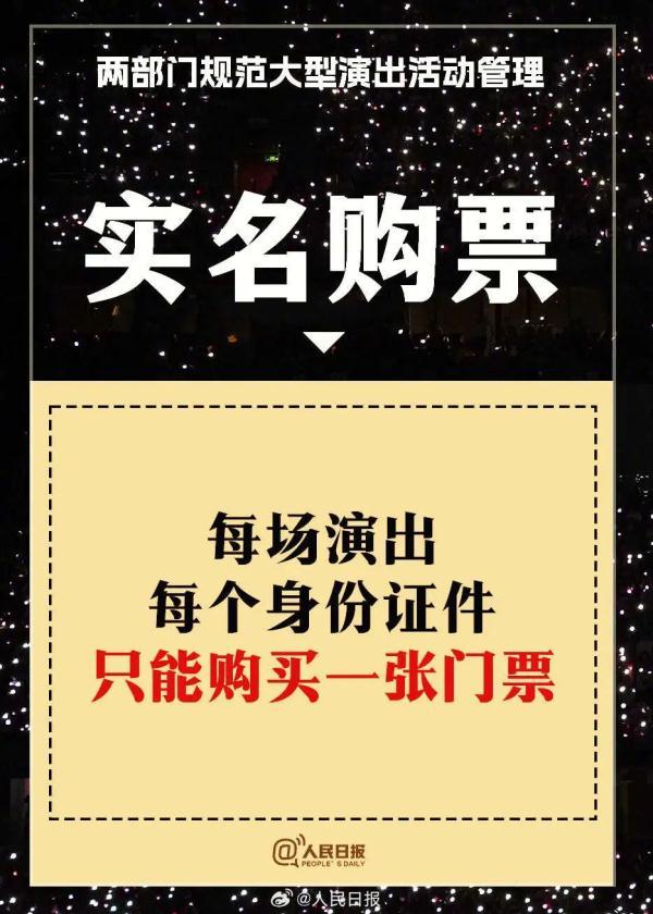 除此之外,通知也再次強調了強實名以及退票等準則,包括:“實行實名購票和實名入場制度,每場演出每個身份證件只能購買一張門票,購票人與入場人身份信息保持一致”“演出舉辦單位應當建立大型演出活動退票機制,設定合理的梯次退票收費標準,保障購票人的正當退票權利”等。