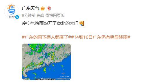 氣象臺表示,總體而言9月14日到16日廣東將有一次大雨到暴雨局部大暴雨的降水過程,部分市縣伴有短時強降水和6~8級雷雨大風,各地最高氣溫將普遍下降3~5℃。