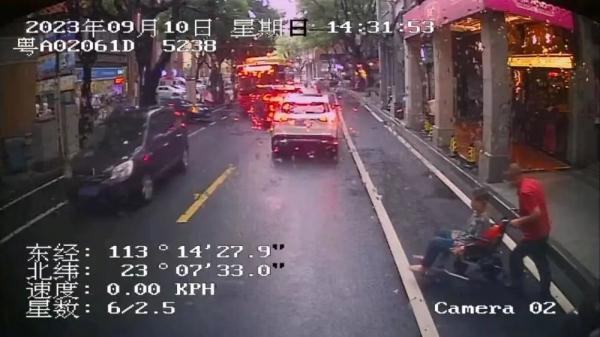 根據車載監控顯示,當天14時30分許,正下著細雨,廣州市一汽三分公司車長肖鋒駕駛車輛執行逸景翠園總站至泮塘總站的營運任務,當車輛行至龍津路時,發現馬路邊上有位坐著輪椅的老人正冒雨艱難地推動著輪椅欲通過馬路。