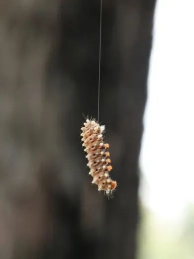根據(jù)其生物學特性,一部分幼蟲會吐絲下垂或沿樹干下行尋找合適的地點化蛹,正是這部分下樹幼蟲在活動時驚動了偶遇它們的人。