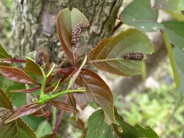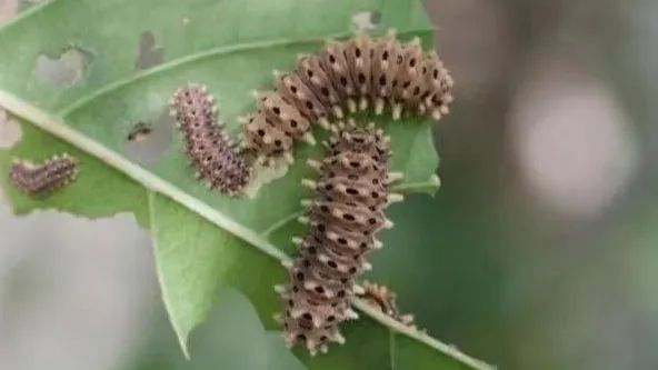 專家表示,重陽木錦斑蛾處于老熟幼蟲狀態(tài)時外形最像海參,此時體長2厘米左右,褐色,每個體節(jié)長有黑斑與突起的肉刺,這些黑斑與肉刺對人體無害。