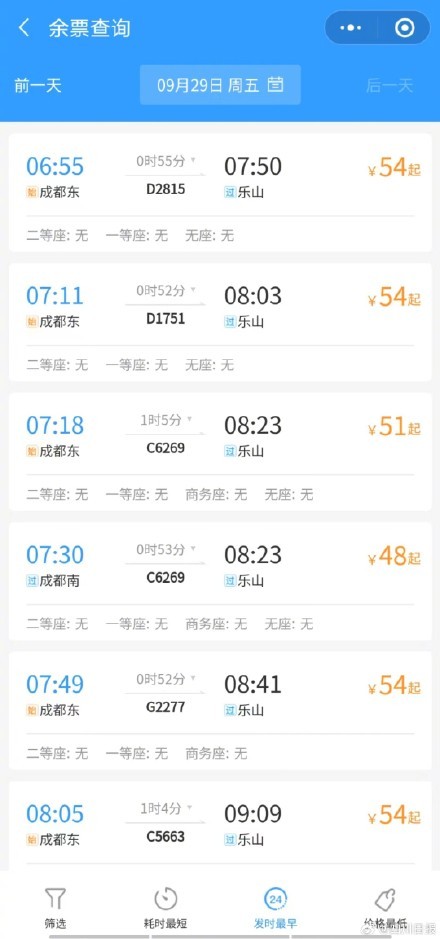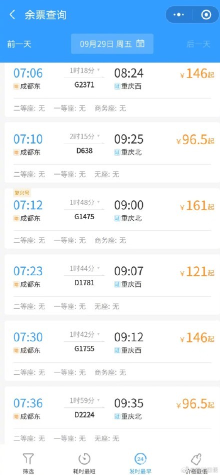 9月15日,國慶黃金周首日火車票開售,重慶-成都、成都-樂山均成熱門短途線路。四川省內(nèi)成都、南充、綿陽、遂寧多條線路開售半小時內(nèi),多個車次售罄。四川省內(nèi)熱門目的地為:綿陽、宜賓、樂山、南充、達(dá)州;從成都出發(fā)的熱門省外目的地為:重慶、西安、貴陽、長沙、武漢。(封面新聞)