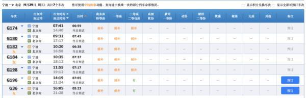 寧波到北京南高鐵始發終到的列車尚有余票,而過路車車票早已售罄。