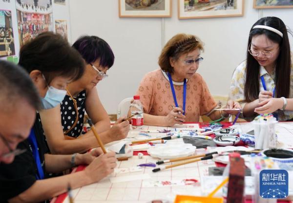↑9月15日,上海市老年大學的學員現場書寫、繪制書簽,贈送給參觀者。