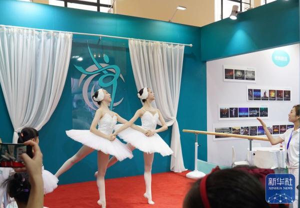 ↑9月15日,上海市舞蹈學校師生在展會現場展示舞蹈練習課堂。