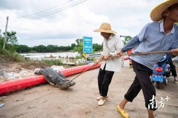 當(dāng)?shù)剞r(nóng)業(yè)農(nóng)村部門介紹,連續(xù)的暴雨讓鱷魚養(yǎng)殖場的圍墻出現(xiàn)兩個(gè)決口,事件發(fā)生后,公安、消防、水務(wù)、應(yīng)急以及捕鱷魚隊(duì)伍等專業(yè)力量到達(dá)現(xiàn)場,第一時(shí)間補(bǔ)好決口,防止養(yǎng)殖場內(nèi)的鱷魚繼續(xù)外逃,隨后在養(yǎng)殖場周邊開展24小時(shí)不停歇的地毯式搜查工作,發(fā)現(xiàn)鱷魚后第一時(shí)間進(jìn)行捕捉。