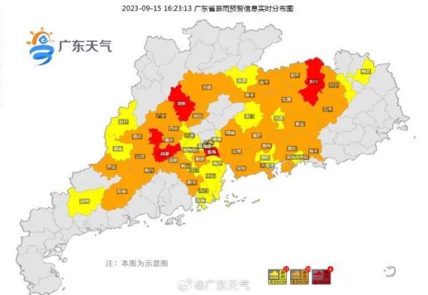 據(jù)@廣東天氣 消息,截至16時23分,廣東省的暴雨紅色預(yù)警已有4個(清新、高要、番禺和龍川),暴雨橙色預(yù)警達(dá)29個,暴雨黃色預(yù)警21個,雷雨大風(fēng)黃色預(yù)警有8個。