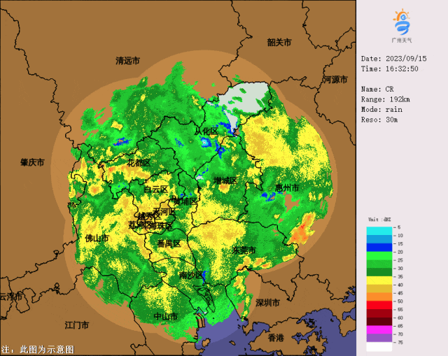 目前廣州市區(qū)、南沙、番禺、黃埔、增城一帶的雷雨云團(tuán)強(qiáng)度明顯減弱,以中到大雨為主,但降雨仍會持續(xù)1-2小時。