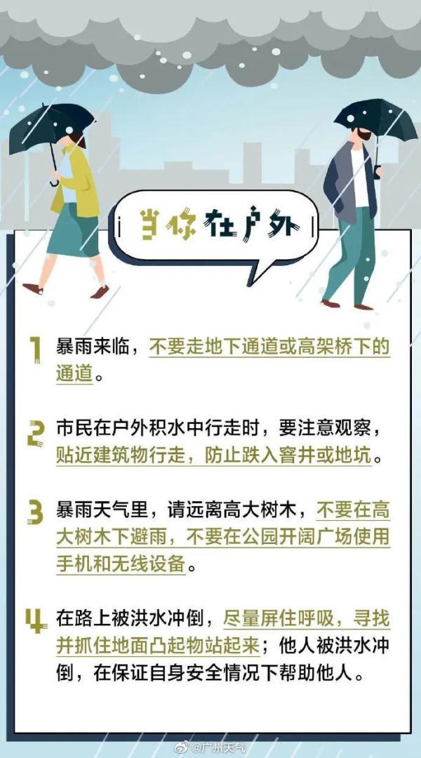 正值下班高峰期,@廣州天氣 提醒,準(zhǔn)備下班、放學(xué)的朋友請對照指引和預(yù)警信號情況,帶上雨傘,路上要注意安全。雨時能見度差,部分路段可能有積水,請注意交通安全,不冒險涉水,合理規(guī)劃路線。