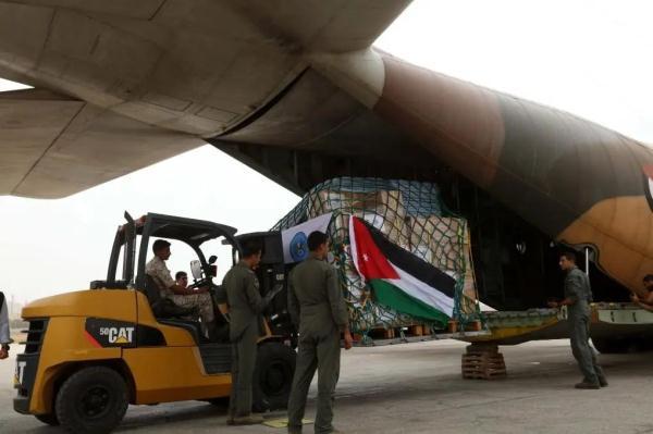 9月13日,工作人員在約旦安曼一軍用機場搬運送往利比亞的援助物資。新華社發(fā)(穆罕默德·阿布·古什攝)