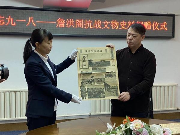 沈陽民間收藏家詹洪閣多年來致力于抗戰文物史料收藏與研究,此次他向博物館捐贈1931年9月至1931年12月間,記錄和見證日本關東軍發動“九一八”事變、武力侵占沈陽城進而入侵遼寧各地的14份日本出版的《東京日日新聞》報紙。這也是詹洪閣第30次向博物館捐贈。
