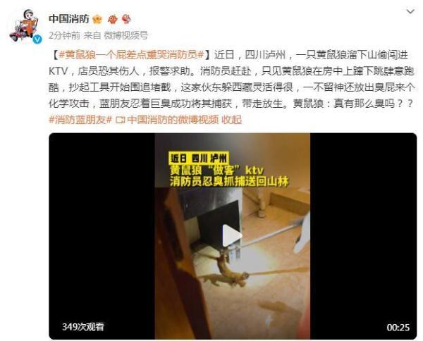 近日,四川瀘州,一只黃鼠狼溜下山偷闖進(jìn)KTV,店員恐其傷人,報(bào)警求助。消防員趕赴,只見黃鼠狼在房中上躥下跳肆意跑酷,抄起工具開始圍追堵截,這家伙東躲西藏靈活得很,一不留神還放出臭屁來個(gè)化學(xué)攻擊,藍(lán)朋友忍著巨臭成功將其捕獲,帶走放生。黃鼠狼:真有那么臭嗎??