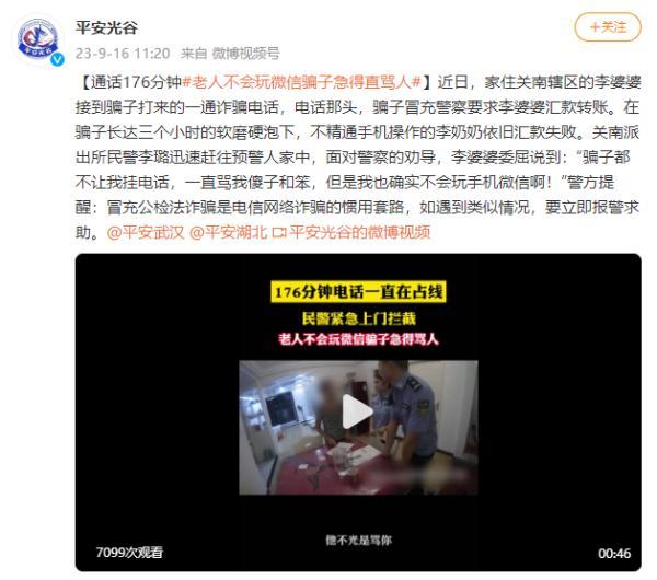 近日,家住關南轄區的李婆婆接到騙子打來的一通詐騙電話,電話那頭,騙子冒充警察要求李婆婆匯款轉賬。在騙子長達三個小時的軟磨硬泡下,不精通手機操作的李奶奶依舊匯款失敗。關南派出所民警李璐迅速趕往預警人家中,面對警察的勸導,李婆婆委屈說到:“騙子都不讓我掛電話,一直罵我傻子和笨,但是我也確實不會玩手機微信啊!”警方提醒:冒充公檢法詐騙是電信網絡詐騙的慣用套路,如遇到類似情況,要立即報警求助。