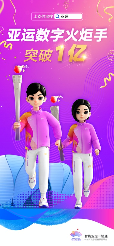 新華社杭州9月15日電 記者15日從杭州亞組委獲悉,“亞運數字火炬手”活動參與總人數已突破1億人。